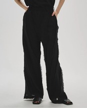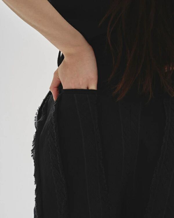 国内で織り上げたオリジナルジャガード生地を使用したパンツ。