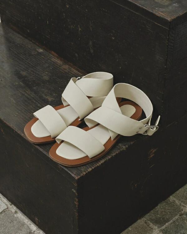 太めのレザーベルトが目を惹くフラットサンダル。