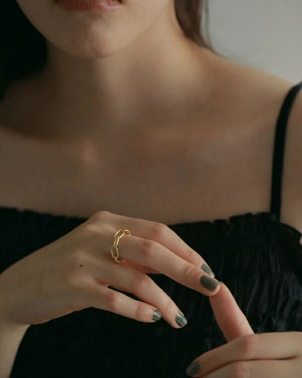 丸みのある小ぶりのチェーンで仕上げたリング。