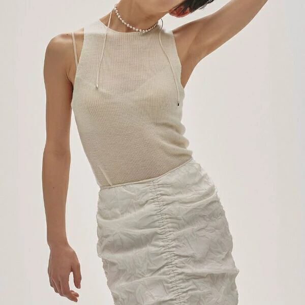 メリノウール100%の繊細な糸を使用して編まれたタンクトップ。