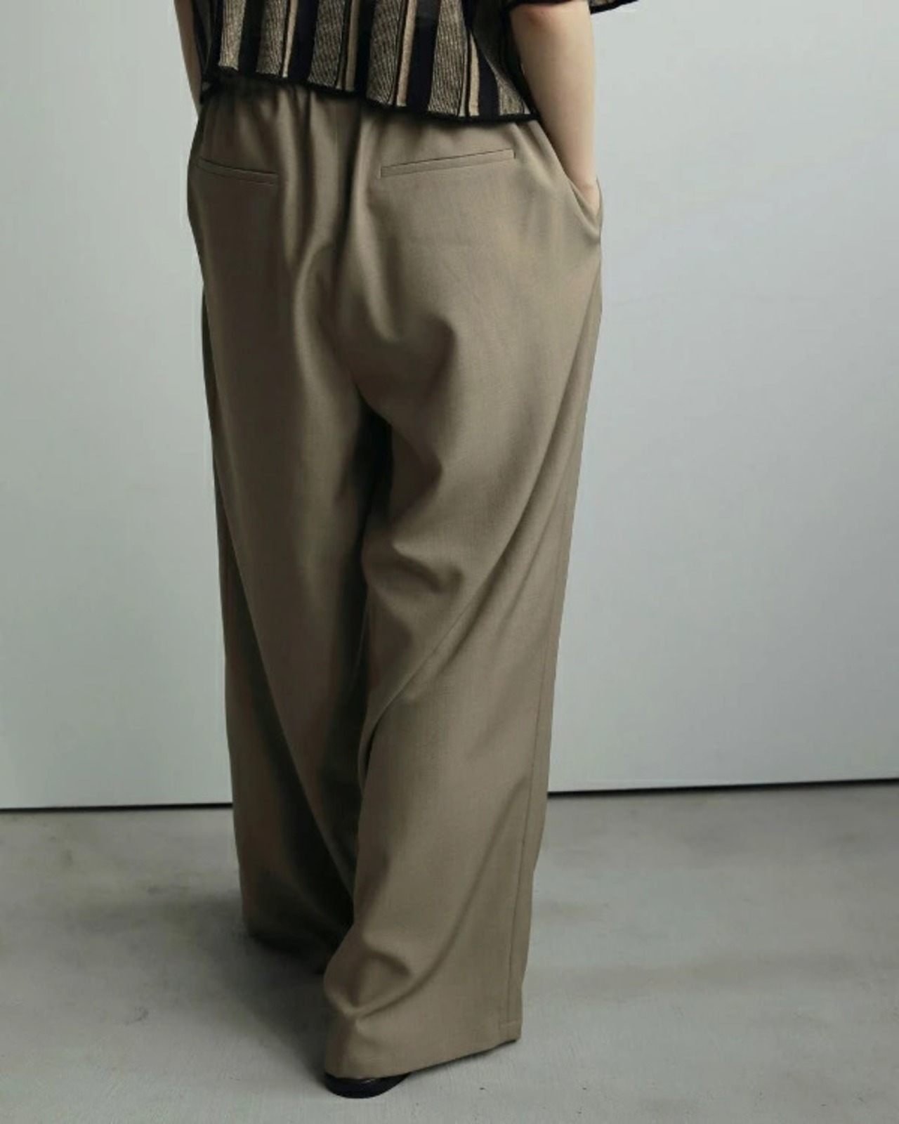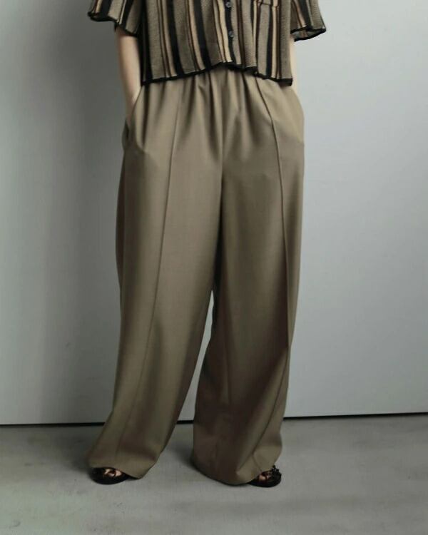 ピンタックにセンターラインを入れ、スッキリとした印象で履けるワイドシルエット。