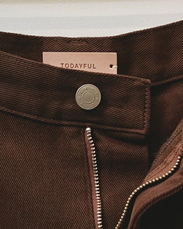 少し腰を落としてマニッシュな雰囲気で履いていただくのがおすすめで、TODAYFULならではのオリジナルカラーで染めたニュアンスカラーは様々なトップスと好相性な一枚です。