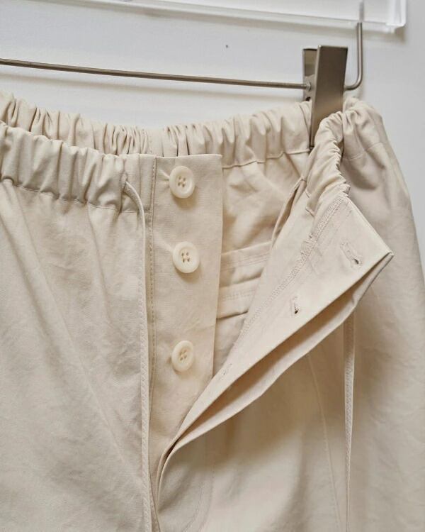 マットな質感と程良いハリを持つコットン生地を使用したイージーパンツ。