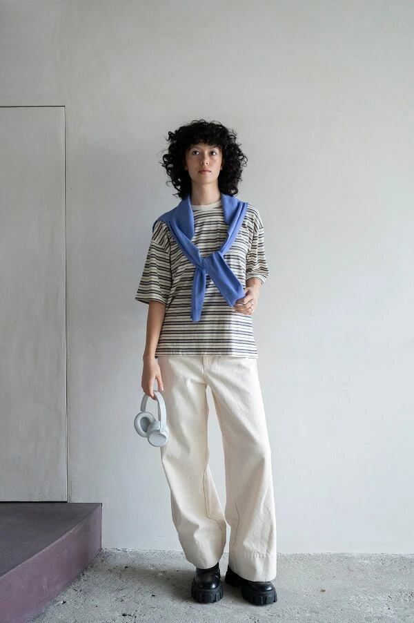 ビンテージ感のある配色ボーダーTは、ダブルラインタフタパンツやデニムとの相性がバッチリ。こなれたカジュアルコーディネートが組めます。