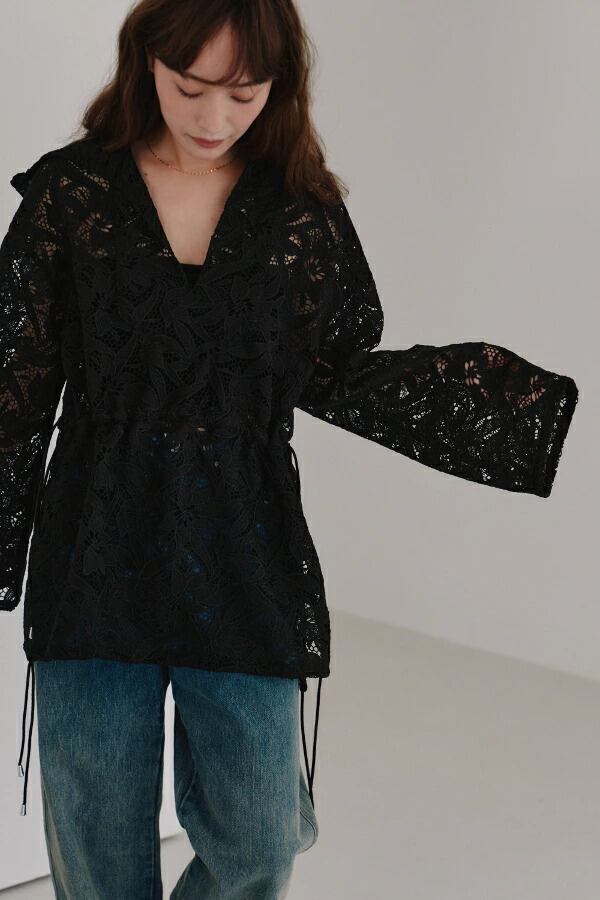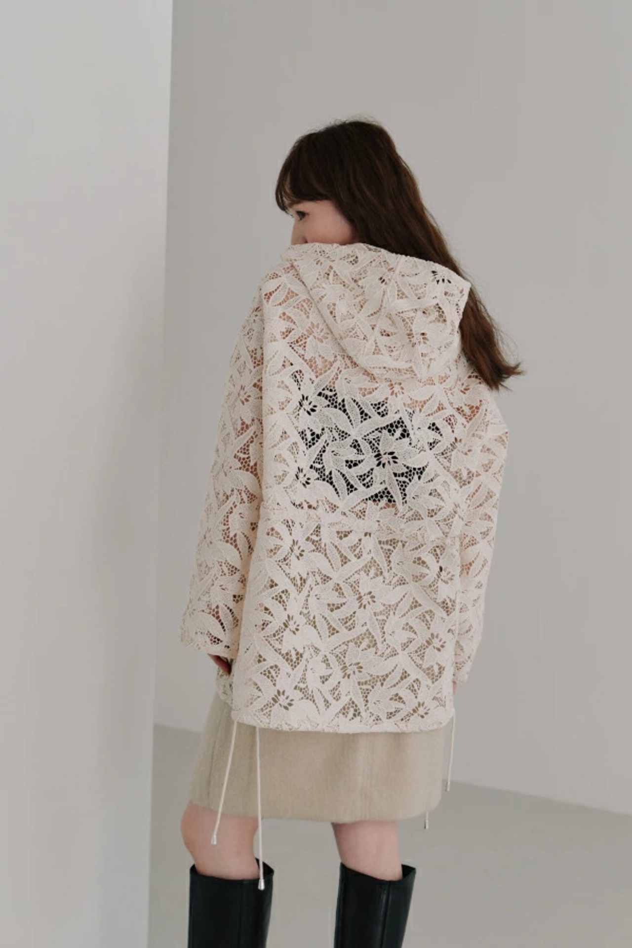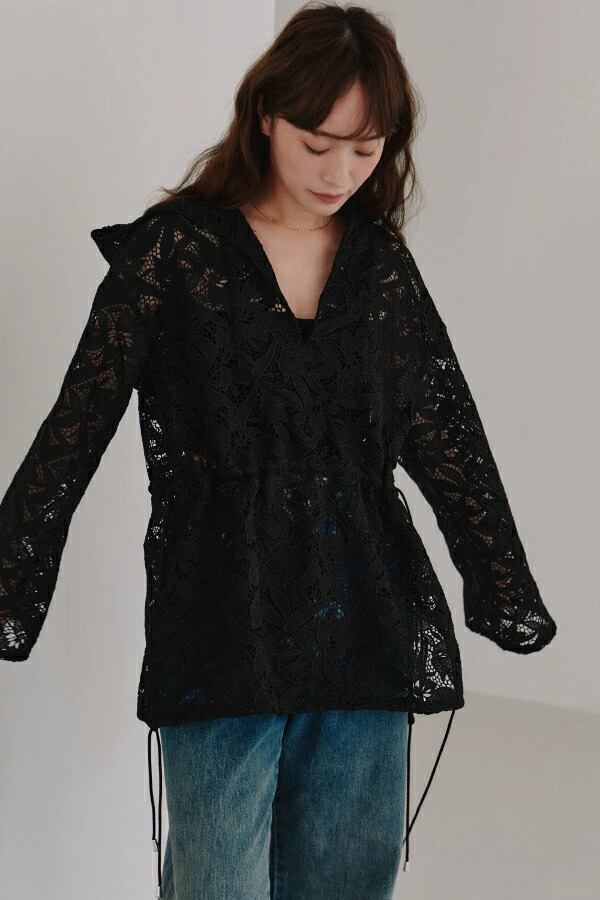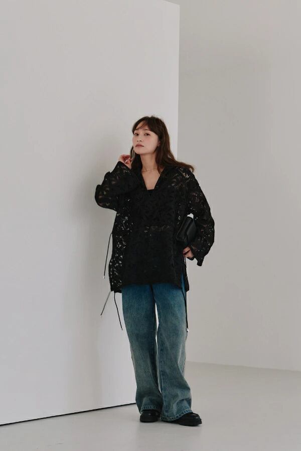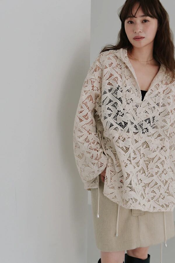 以前大変ご好評いただいた、レースフーディーの生地を変えてリバイバル。
