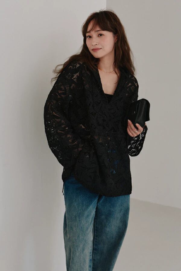 カジュアルなデザインを立体感あるジャガードレースに落とし込んだビンテージ感漂う他にない1枚。