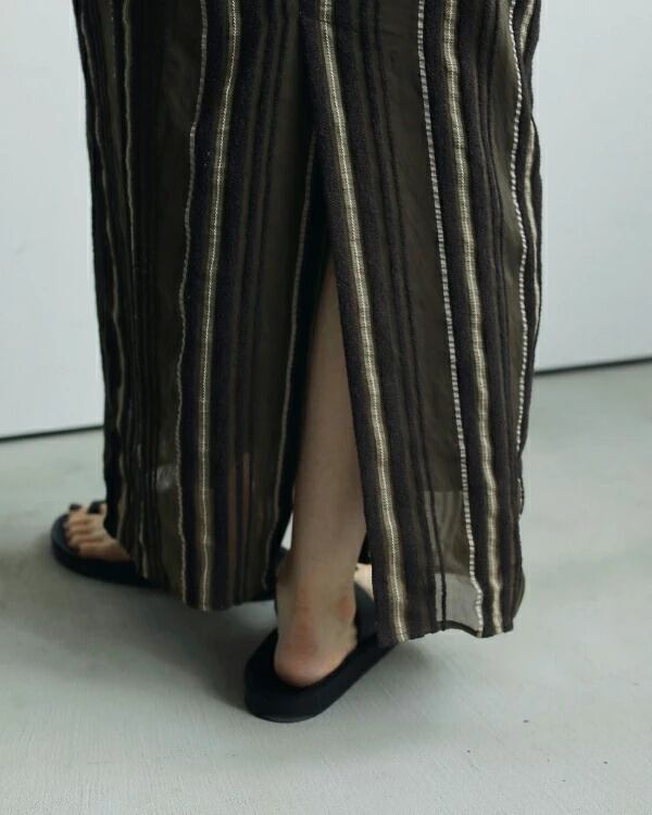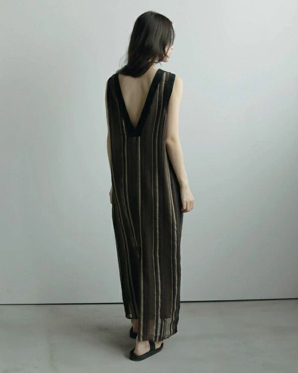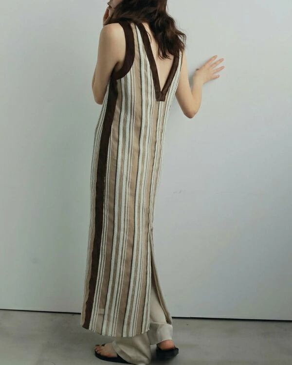 日本の桐生で織り上げたオリジナルのストライプ生地を使用したワンピース。