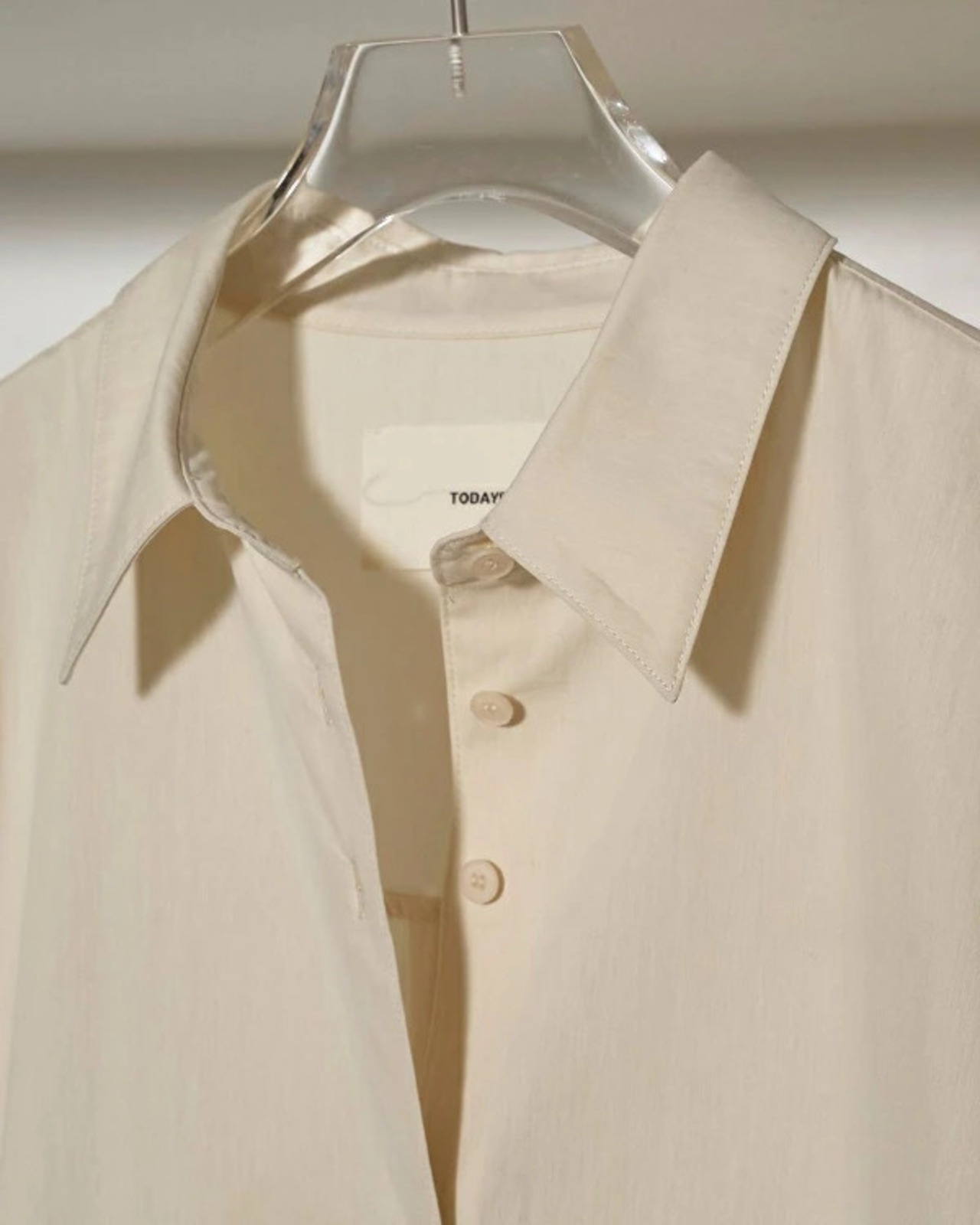 高密度に糸を打ち込んで織られた上質な国内のシャンブレー生地を使用したシャツ。