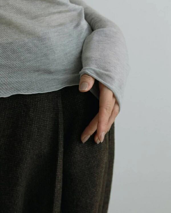 薄手のカットソーで、ジャケット等のインナーから、ワンピースやベストとのレイヤードなど、幅広く着回していただけます。