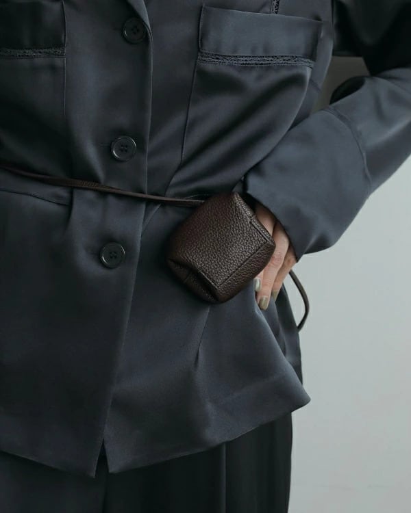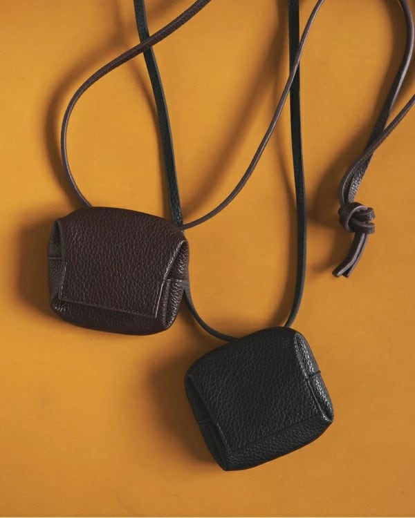 シボ感のあるエコレザーを使用したミニポーチ。