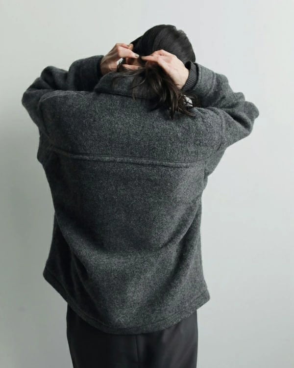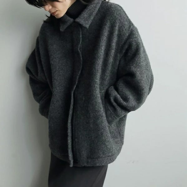 柔らかくふくらみのある暖かな素材で、メンズライクに着れるシンプルなデザイン。