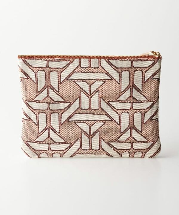 鮮やかなカラーリングとエスニック模様のジャガード生地が目を引くポーチ。