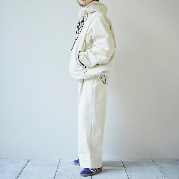 程よく張りがありマットな質感の生地を使用したフーディージャケット。
